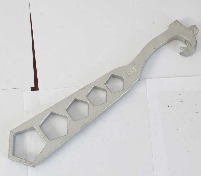 5 হোল হাইড্রেন্ট রেঞ্চ: ঢালাই আয়রন ধাতুপট্টাবৃত - ফিট পেন্টাগন 1”, 1 1/8”, 1 1/4”, 1 1/2” &1 3/4”।